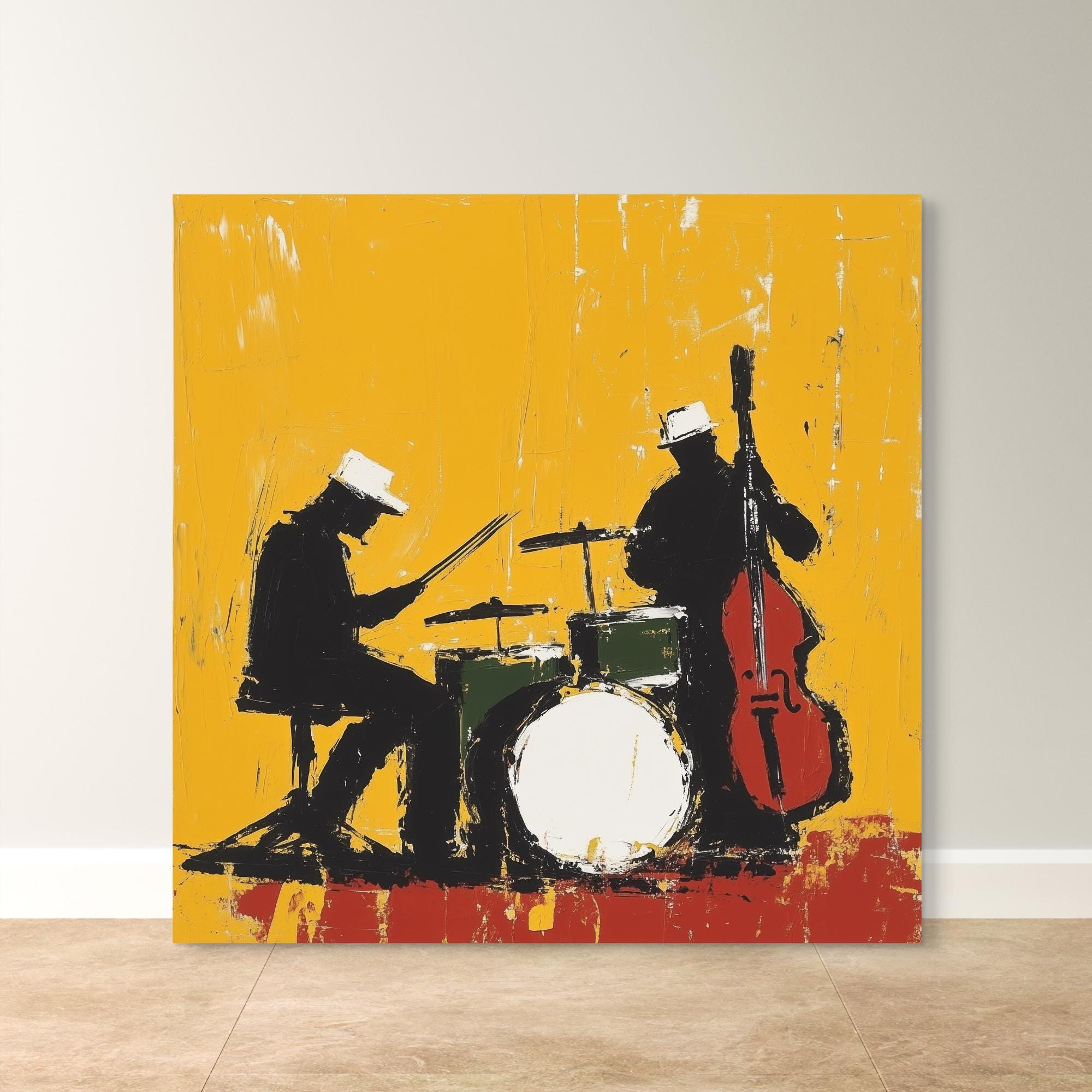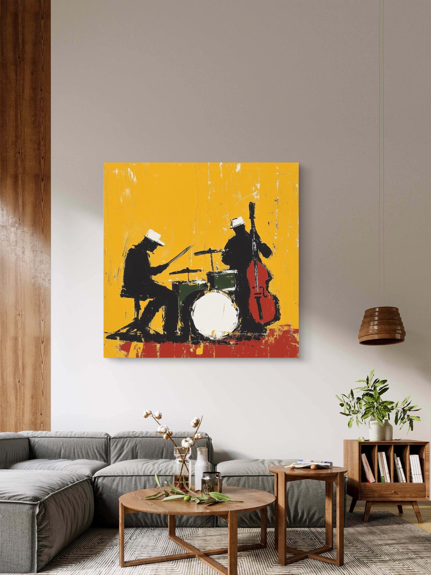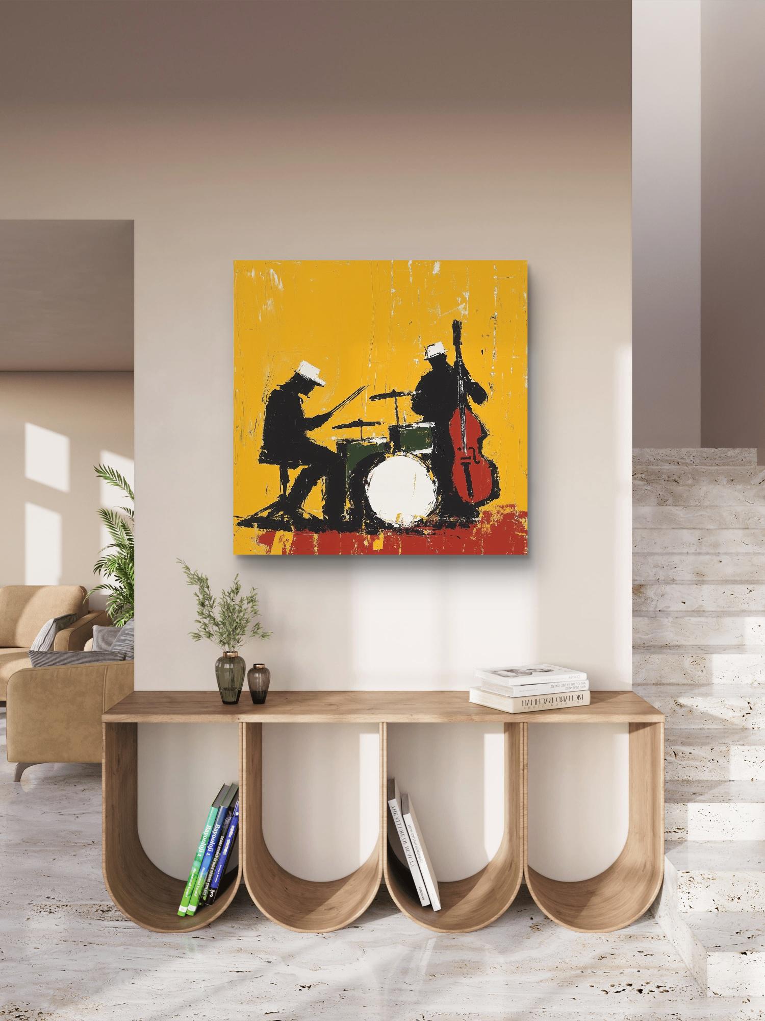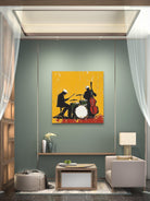 Bring your walls to life with Midnight Rehearsal, a bold and expressive jazz-themed artwork capturing the rhythm and soul of a live performance. This abstract silhouette features a drummer and upright bassist, contrasted against a vivid yellow backdrop that radiates energy and movement. Available as a premium canvas or archival paper print, it’s perfect for music lovers, creatives, and modern art collectors looking to make a statement.