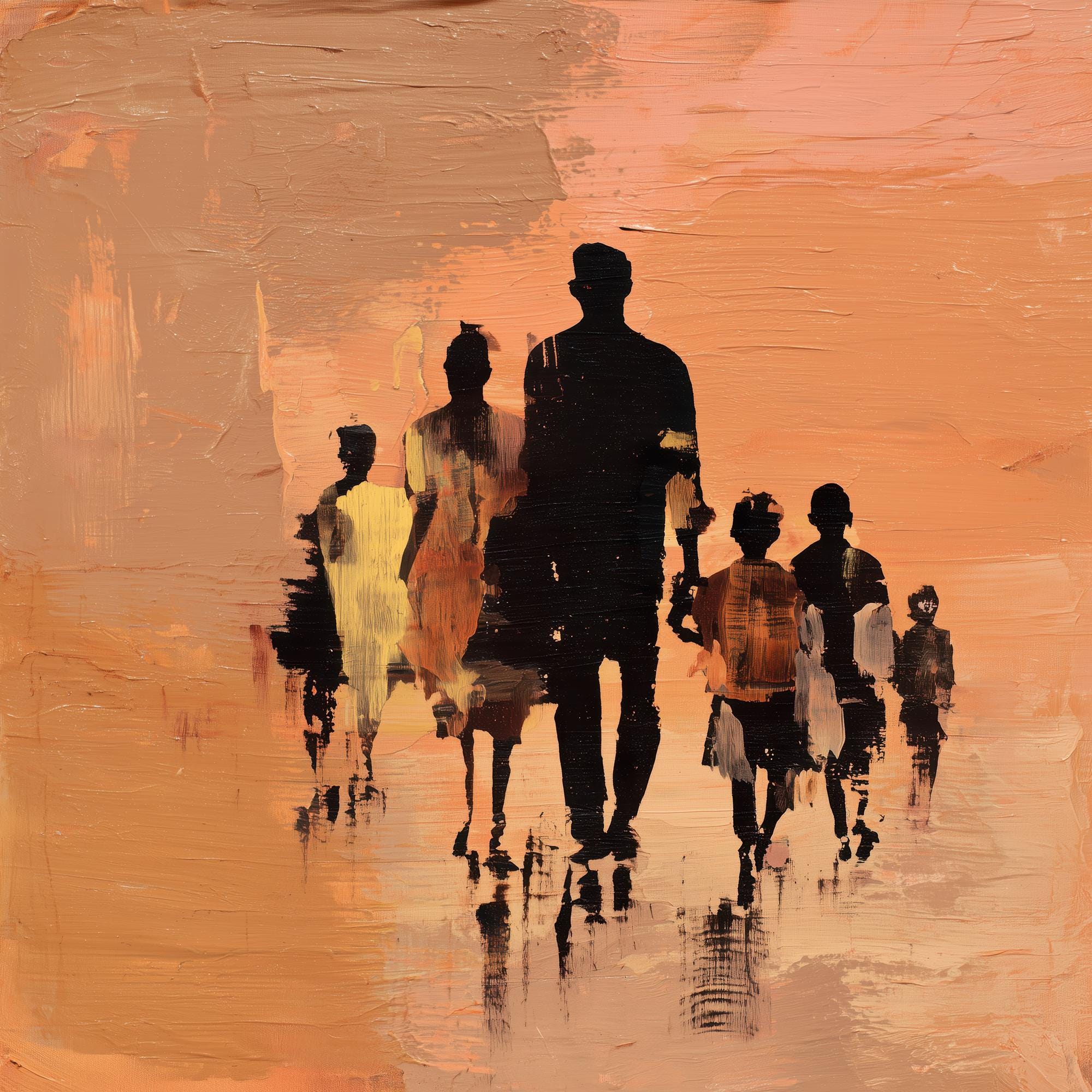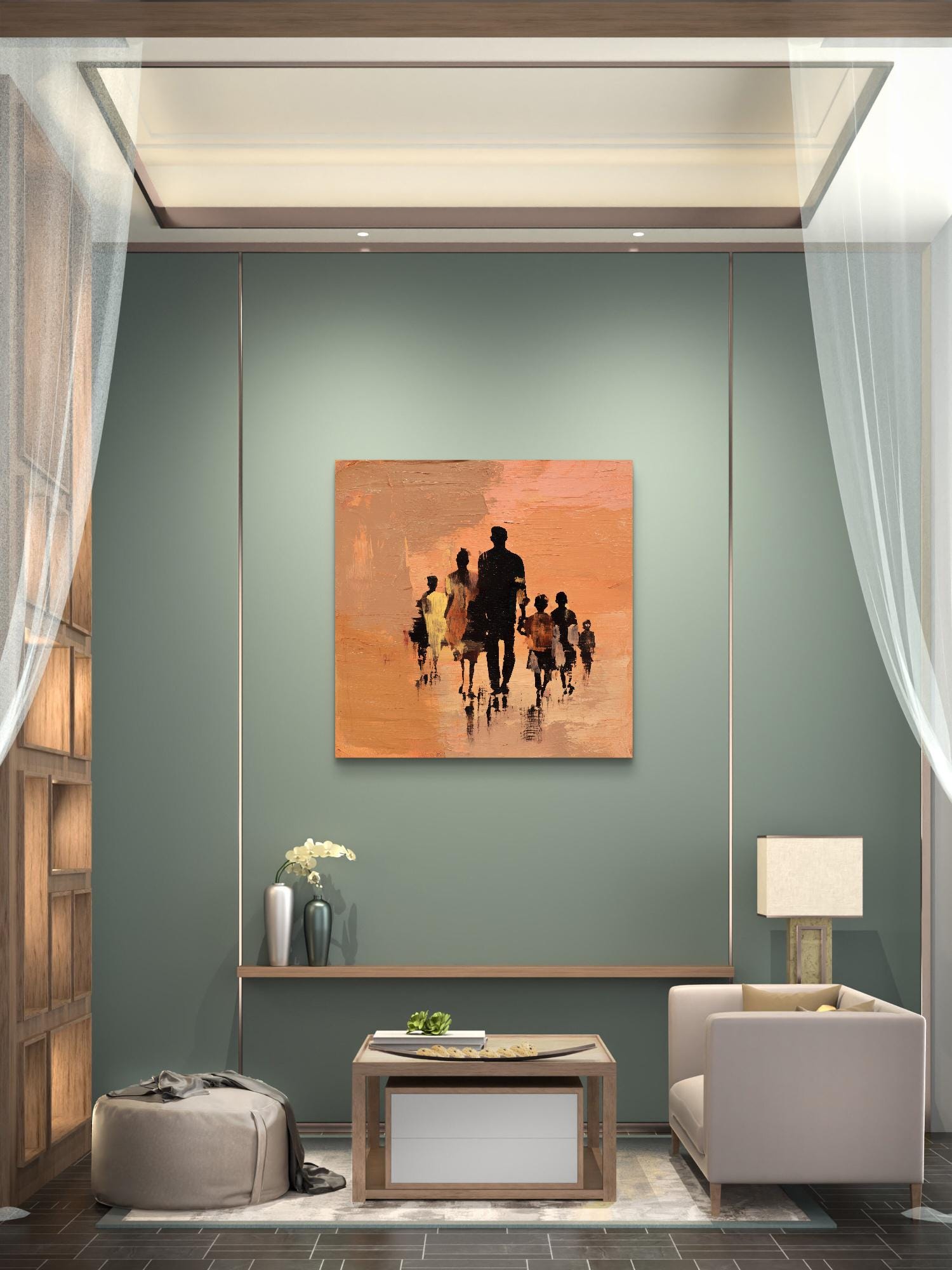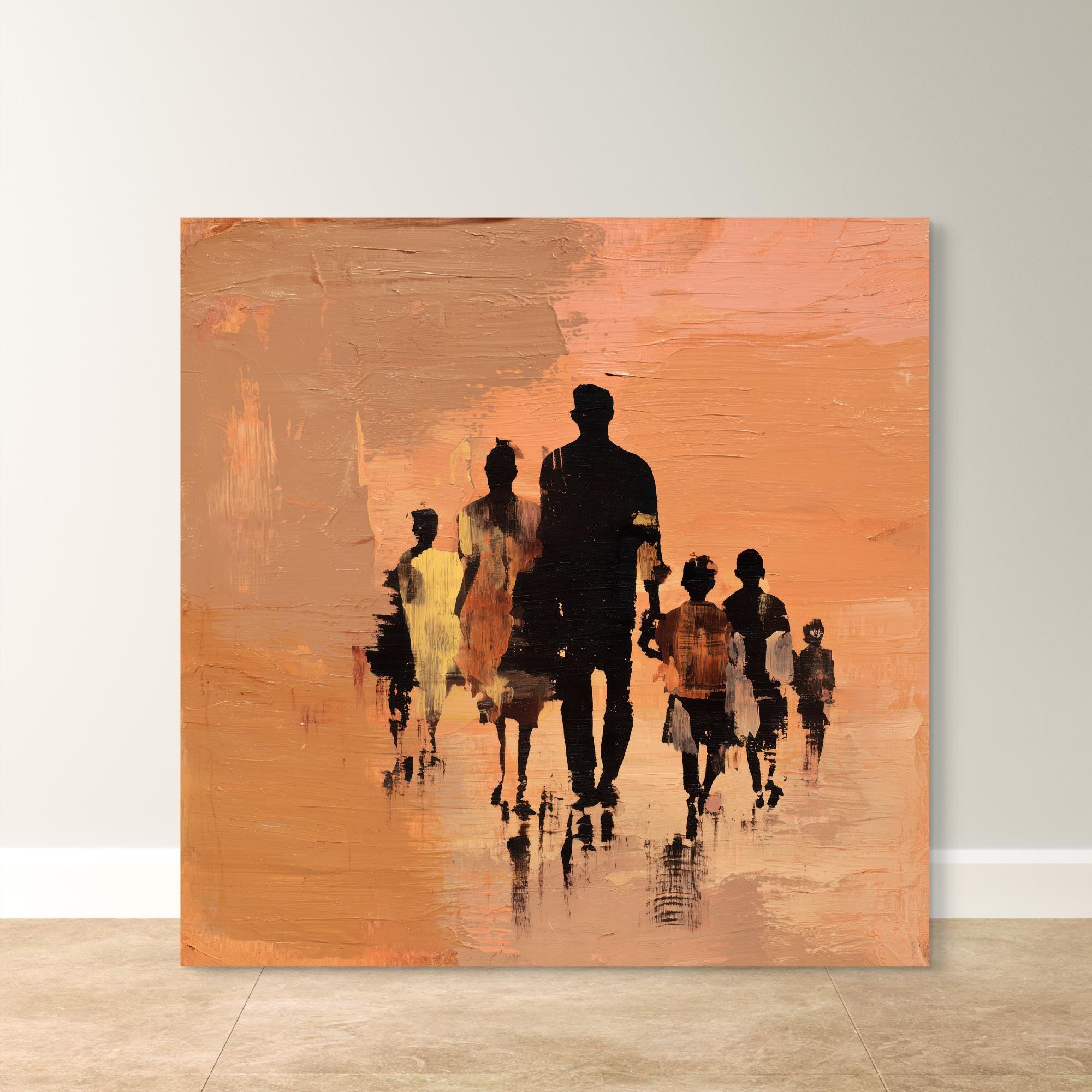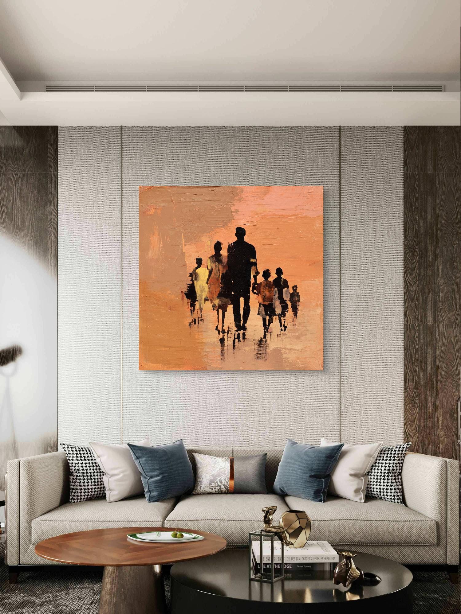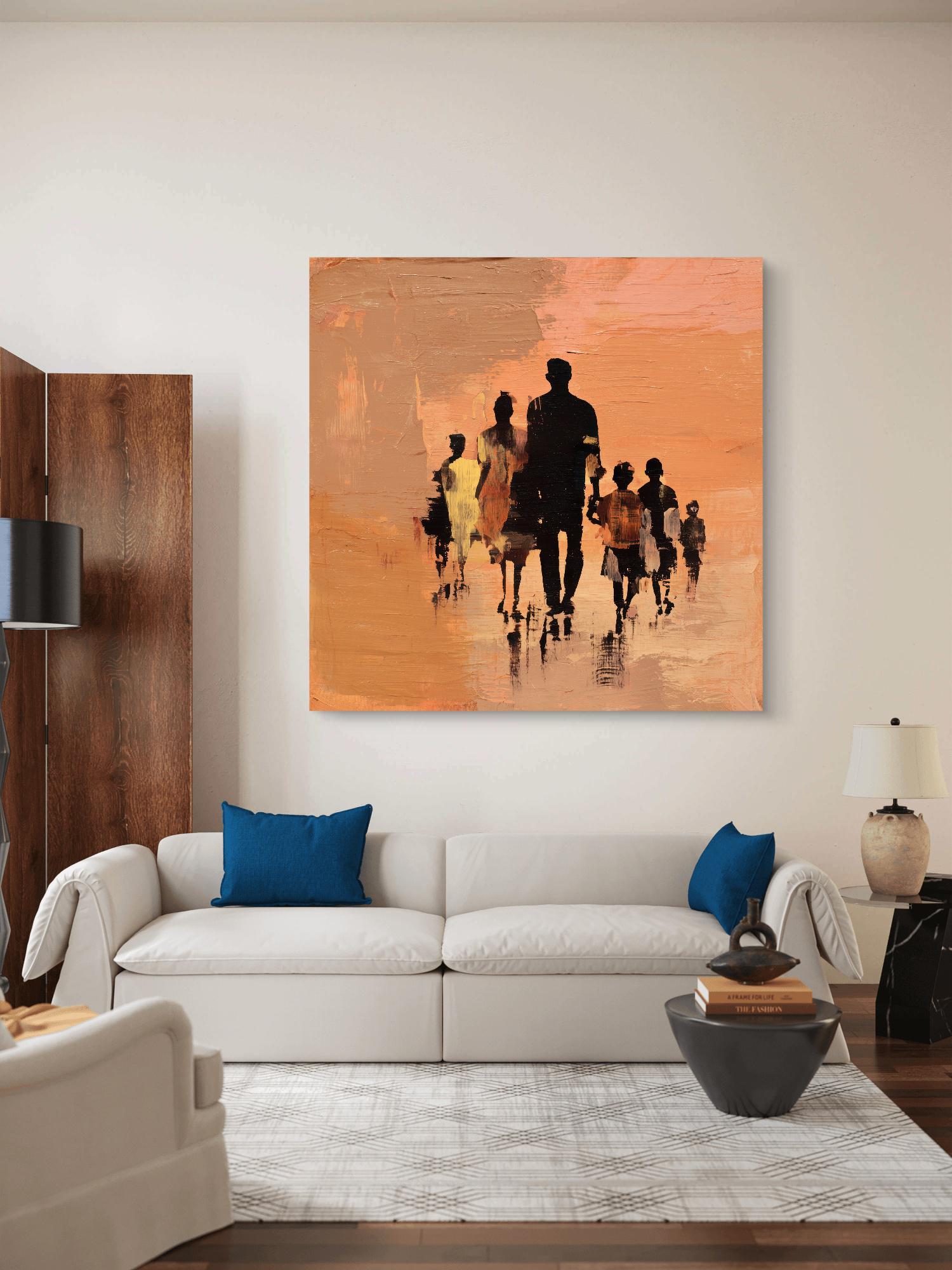 Steps of Us captures the quiet strength and unity of a family walking forward together, painted in expressive abstract silhouettes against a richly textured, earth-toned background. This emotional and minimalist artwork speaks to heritage, togetherness, and shared journeys—making it a meaningful addition to any home that honors family and connection.