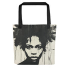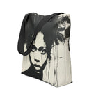 Turn heads wherever you go with “Stare Down.” This striking black and white portrait tote features a fierce gaze and raw brushwork, making it more than just a bag—it’s wearable art. The expressive drips, bold contrast, and powerful presence make this tote perfect for those who move through the world with edge, purpose, and style.