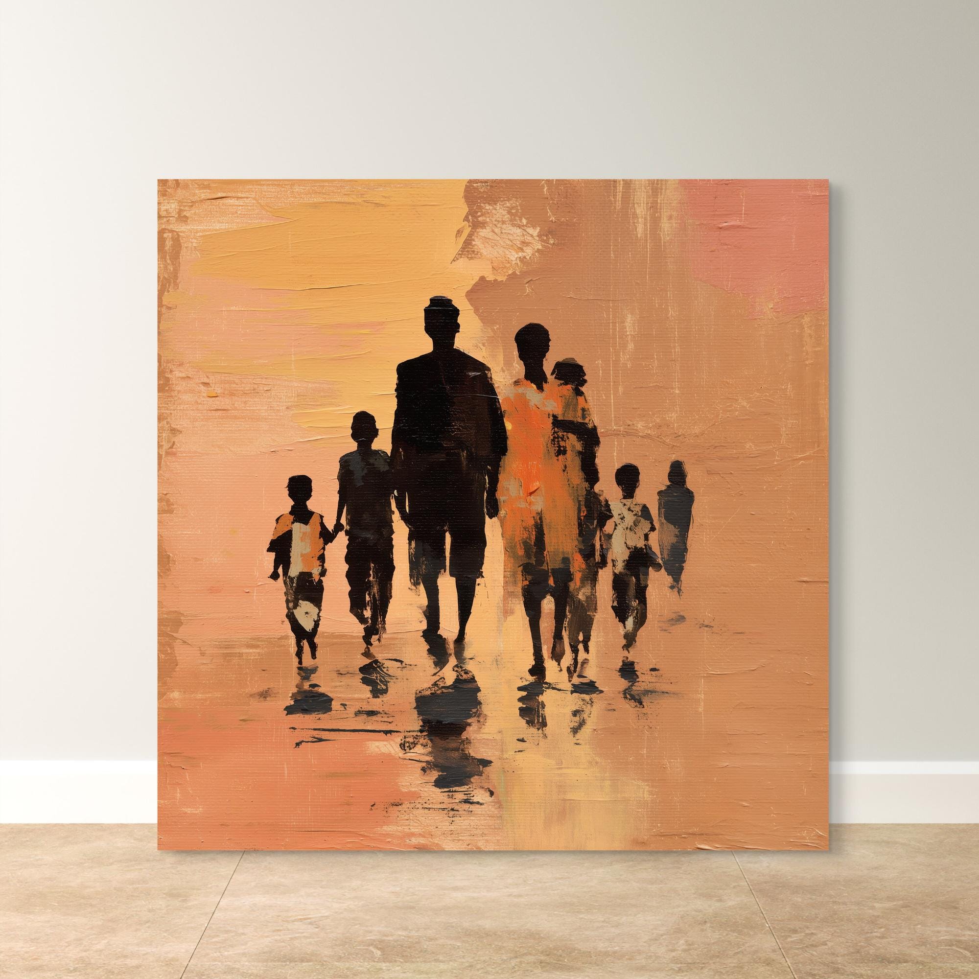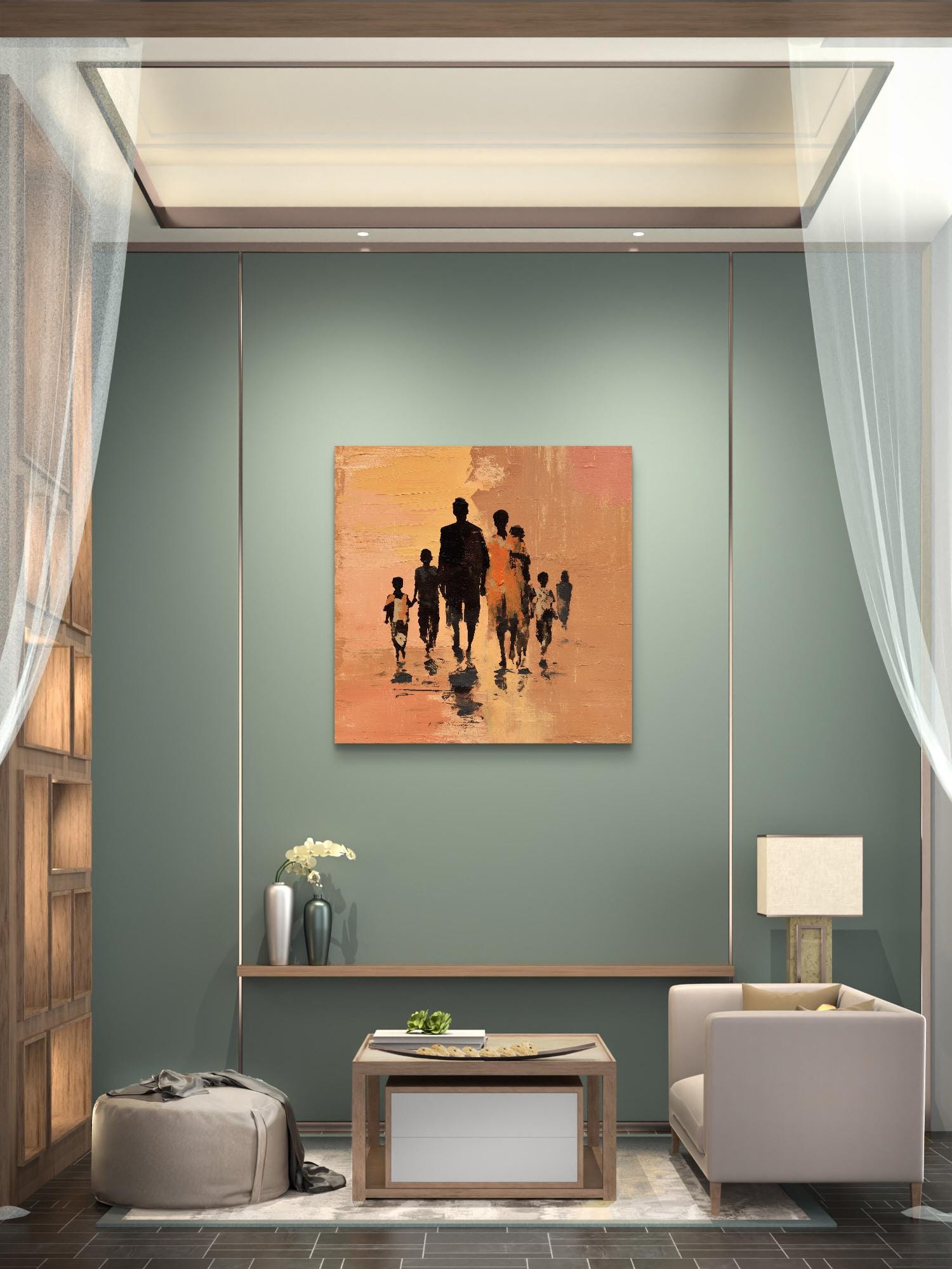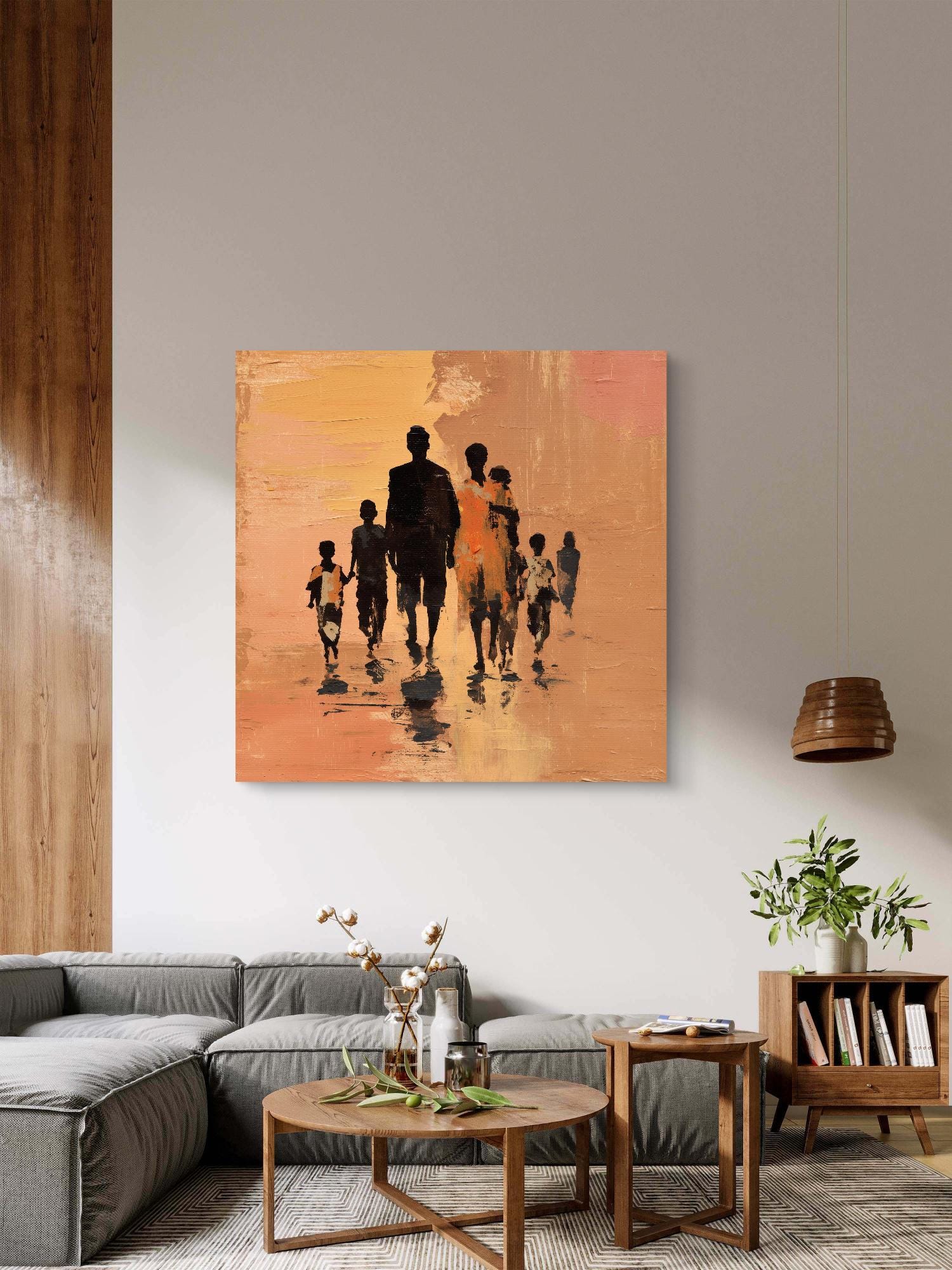 Lasts of Us is a moving abstract portrayal of family and unity. With silhouetted figures walking together against a warm, earthy backdrop, this artwork captures the essence of connection, guidance, and shared journeys. The painterly texture and sunset tones add depth and emotion, making it a meaningful addition to any home.